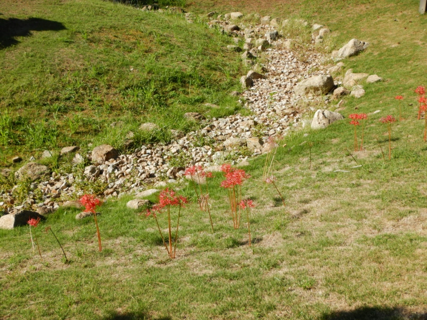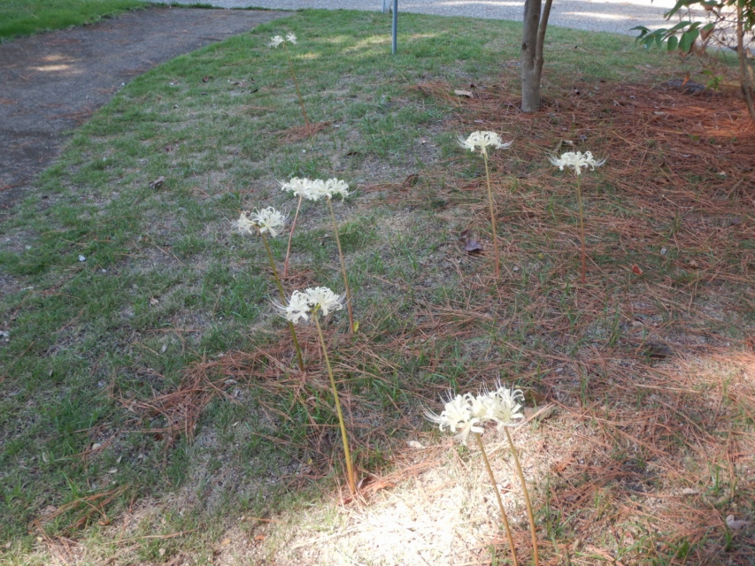 写真一・二枚目は移ろいの庭。三・四枚目は松の谷です。白いヒガンバナも先週から咲いていて終わりに近いのですが、数本残っていました。