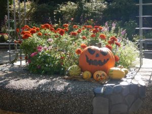 前述の立体花壇周辺以外にも、ハロウィンかぼちゃ🎃を園内各所に転がしてます。探してみてね。