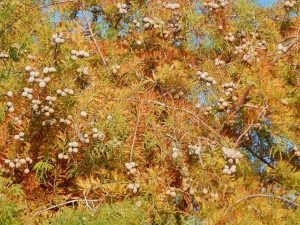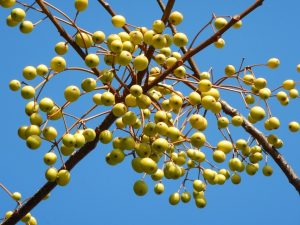 三枚目はセンダン。5mくらいの木にオリーブみたいな実がなっています。海のテラスそばに3本、花の丘道に1本の木があります。