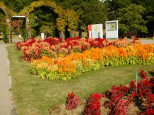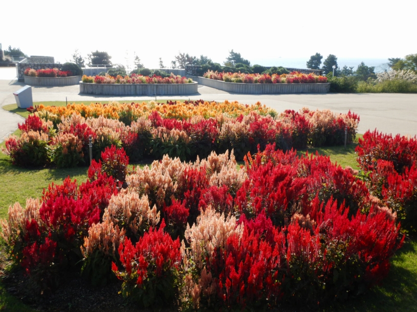 ポプラの丘のケイトウは見ごろが終わりましたが、海のテラス周辺のケイトウは見ごろです。大規模ではありませんが、いい色を取り揃えています。
