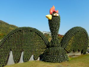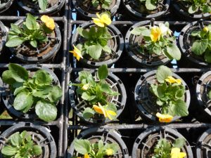 つい先日までコリウスという植物でモサモサしていた花火鳥が、パンジーに植替えられました。超スッキリしちゃって、骨格から向こう側の景色が透けて見えます。これからゆっくり羽(植物)でおおわれていきますよ。