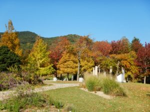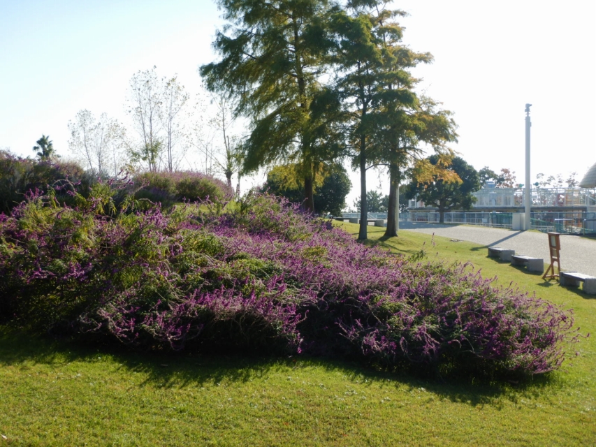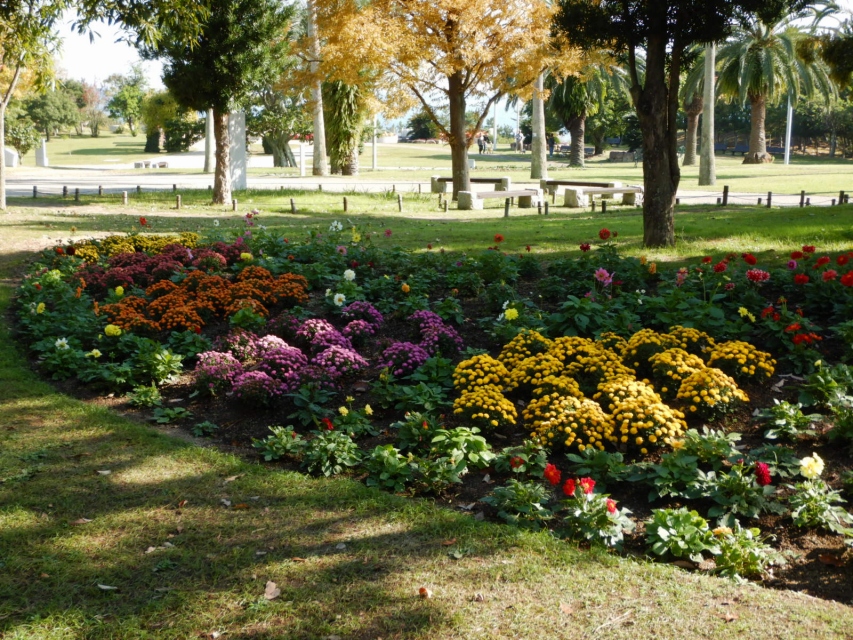 大規模花壇のコスモスなどが終わり何もないと思われるこの時期ですが、落葉した木々のオシャレな枝ぶりが見られたり、紅葉が楽しめたり、海もきれいに眺められたりします(※ただし晴れの日限定)。お散歩を楽しめると思いますので、是非いらしてください。