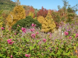 ウォーウィックとアーコレードは春と秋の2回咲く桜。それぞれ1本しかないですが、9月末からチョボチョボ咲いています。例年だとそろそろ存在に気づかなくなる時期なのですが、横を通るとフッと視線がいくくらいまだまだ咲いています。
