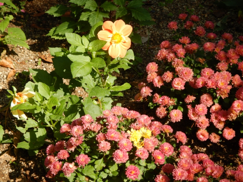 ダリアもポットマムも咲いています。が、成長が遅く、株の大きさがジワリジワリとしか大きくならず、特にダリアは花数がなかなか増えません。このまま今年は終わるのか…?と不安がよぎりますが、花がピョコピョコ伸びたように見える今も、かわいいと言えばかわいいですよ。