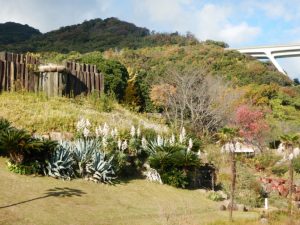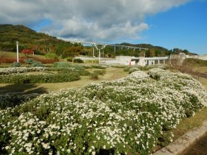 海のテラスの真下に広がるスペースに、なかなかの規模でノジギクを植えています。牧野富太郎が発見・命名したノジギクは、兵庫県の花でもあります。この機会に是非覚えていってください。