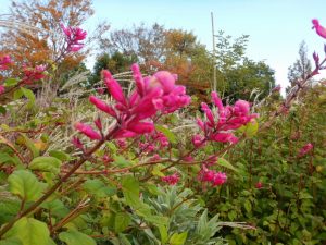 ウォーウィックとアーコレードは春と秋の2回咲く桜。それぞれ1本しかないですが、9月末からチョボチョボ咲いています。雨で花が少し散ってしまいましたが、きれいだなぁとつい見ちゃいますよ、きっと。