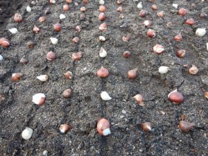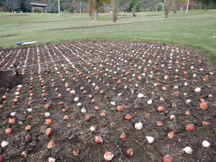 チューリップの球根植栽中