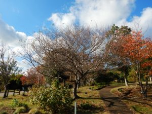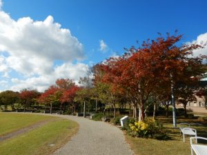 大規模花壇のお花が終わり何もないと思われるこの時期ですが、落葉した木々のオシャレな枝ぶりが見られたり、紅葉が楽しめたり、海もきれいに眺められたりします(※ただし晴れの日限定)。お散歩を楽しめると思いますので、是非いらしてください。