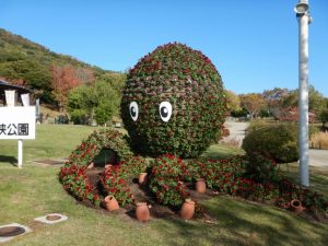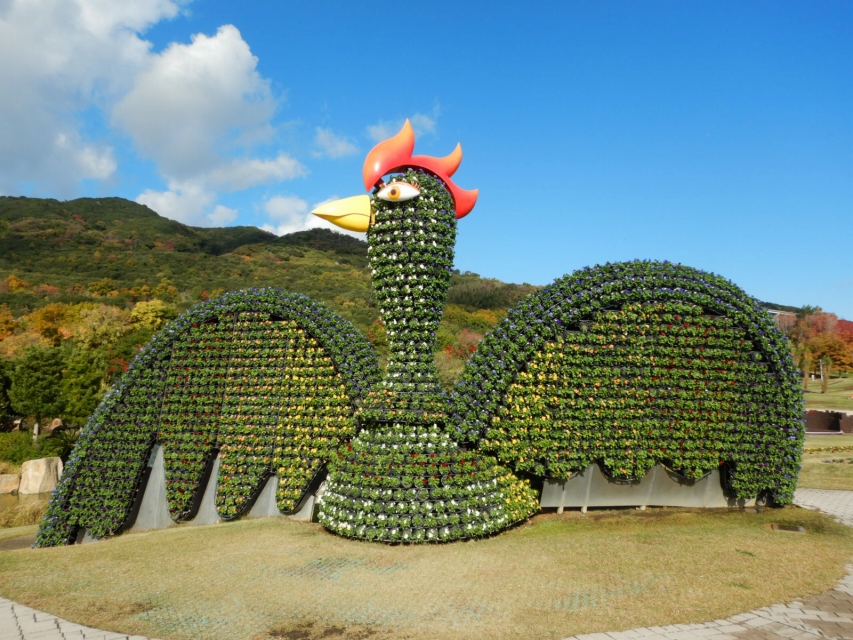 立体花壇「花火鳥」、「タコトピアリー」(場所:大地の虹、東浦口ゲート前)