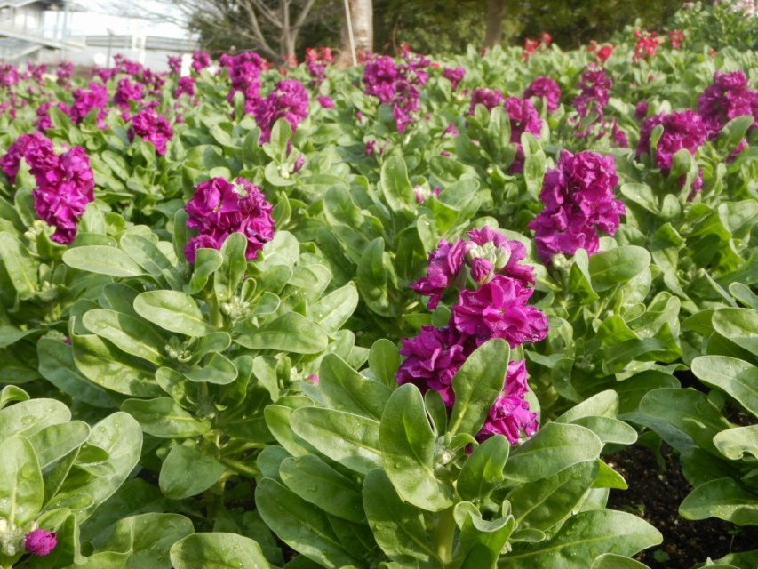 移ろいの庭の花形花壇の「花茎」部分に植えたストックが育ってきました(※「花」部分は寒咲きナノハナ)。階段花壇もちょっと遅れて育ってきています。