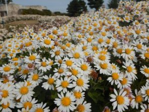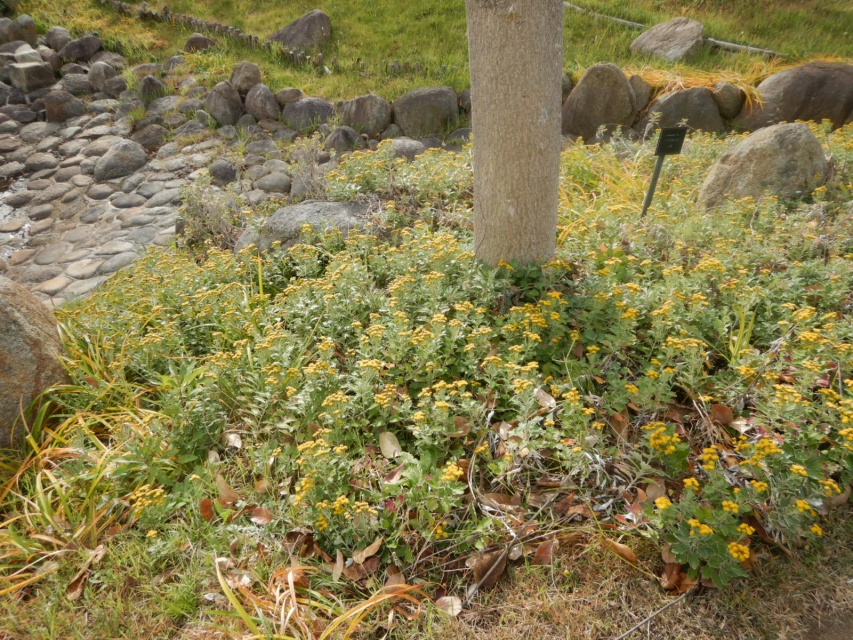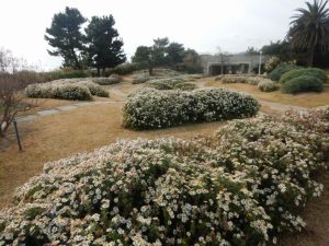 海のテラスの真下に広がるスペースになかなかの規模でノジギクを植えており、可憐な花がチマチマチマッと大量に咲いています。牧野富太郎が発見・命名したノジギクは、兵庫県の県花です。この機会に是非覚えていってください(写真は海岸口ゲートそば)。