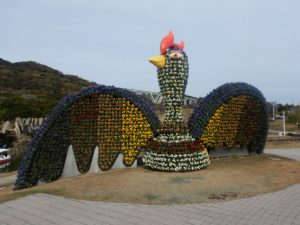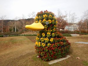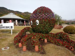 立体花壇「花火鳥」、「タコトピアリー」(場所:大地の虹、東浦口ゲート前)