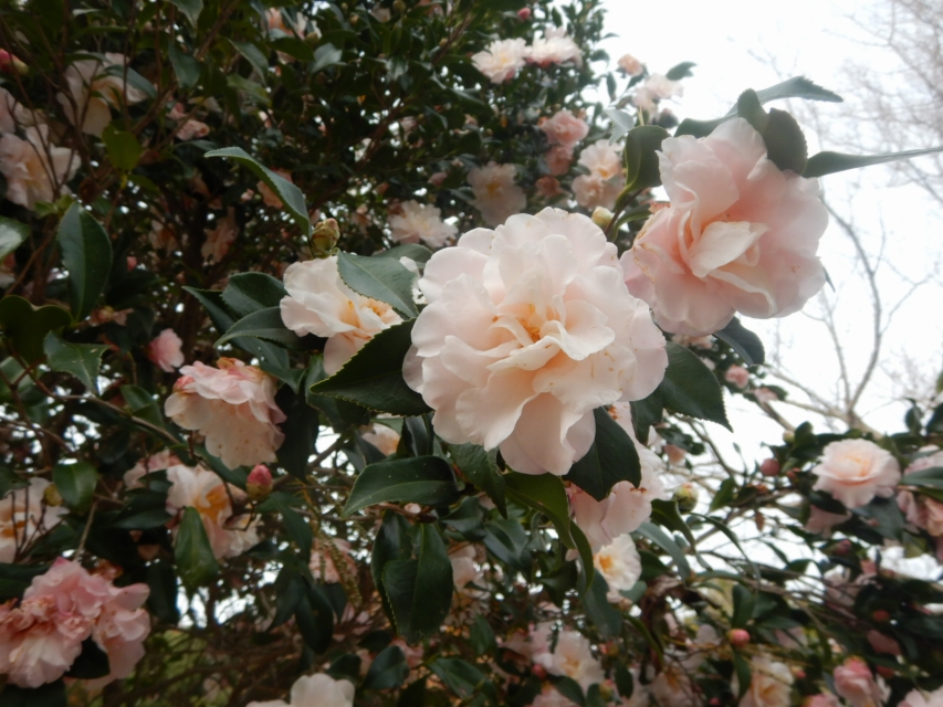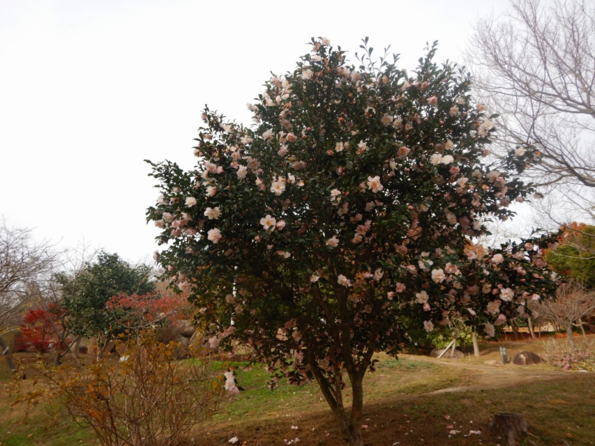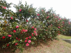 花の谷ではサザンカが見ごろになりました。1本だけですが大きな花がたくさんでとっても目立ちます。