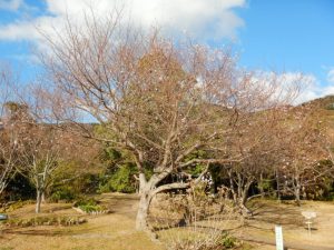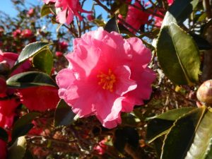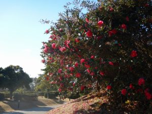 移ろいの庭や東浦口ゲートそばではカンツバキが咲いています。陽だまりの丘周辺でワビスケやヤブツバキなどもチラホラと咲き始めてはいますが、開花数はなかなか増えませんね。