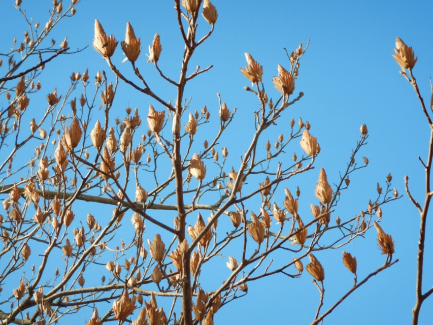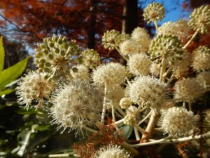 この冬は開花が長い!まだつぼみが微妙に残っています。花真っ盛りが11月くらいの年は、虫がブンブン飛び回って観察する気がおきないのですが、この冬はこの時期まで咲いているため、よく見るとかわいい花がジックリそばで見られますよ。