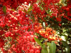 ピラカンサ(※花ではなく実です)(場所:滝のテラス上部(大地の虹側から見える))