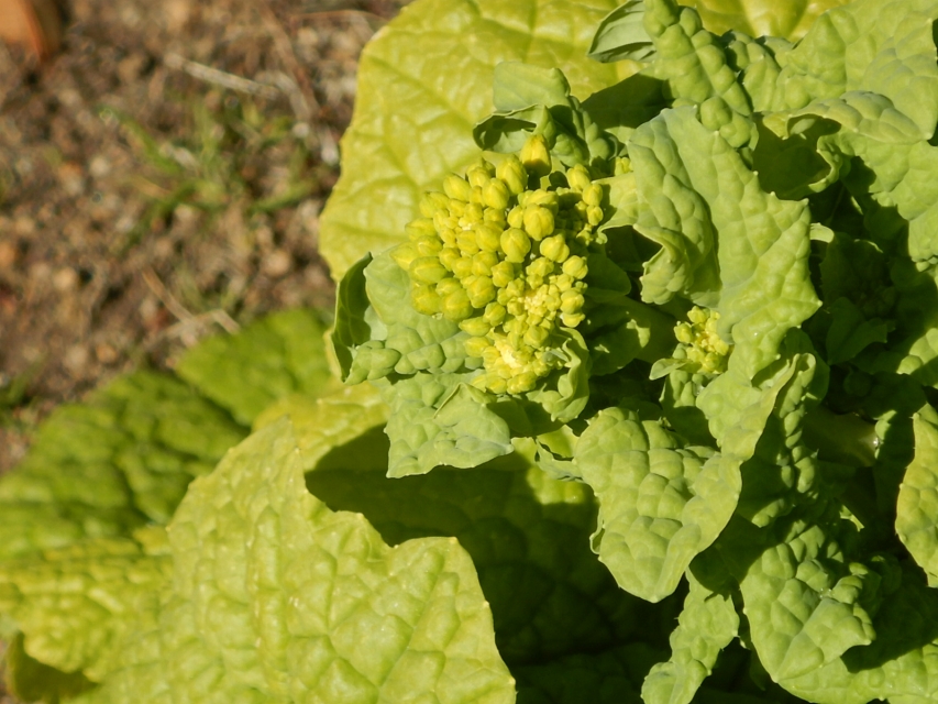オマケで現在の寒咲きナノハナの様子もご紹介しますね。一通り見て歩いたところ、今日は写真四枚目のようなつぼみが2株ありました。スーパーで売っている食用ナノハナくらいのつぼみの硬さ、と言ったらわかりやすい?!つぼみが少しずつ増えていき、1月の半ばくらいから咲き始めるのではないかなぁと思っています。