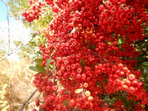 ピラカンサ(※花ではなく実です)(場所:滝のテラス上部(大地の虹側から見える))
