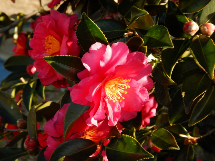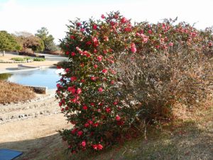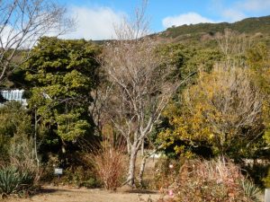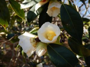移ろいの庭や東浦口ゲートそばではカンツバキが咲いています。陽だまりの丘周辺でワビスケやヤブツバキなどもチラホラと咲き始めてはいますが、開花数はなかなか増えませんね。