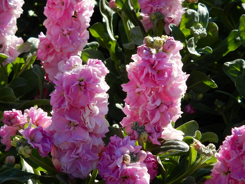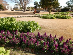 移ろいの庭はもう少しで寒咲きナノハナが咲き始める予定ですが、それより一歩お先にストックが咲いています。また、移ろいの庭の南西方向にある階段花壇でもストックが見ごろです。