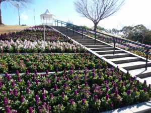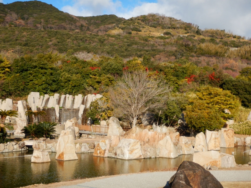 ⑭園路を進み、せせらぎ橋を渡り、移ろいの庭階段花壇を見てから淡路口ゲートに。お疲れさまでした。グルッと回って1時間はかからないと思います。
