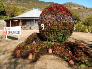 ③園路沿いに東浦口ゲート方向に向かうと、見えてくるのが「タコ」の立体花壇。