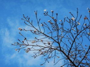 この冬は開花が長い!まだつぼみが微妙に残っています。開花が11月くらいの年は、花に虫がブンブン寄っていて観察する気がおきないのですが、この冬は虫が去ったこの時期まで咲いているため、よく見るとかわいい花がジックリそばで見られますよ。
