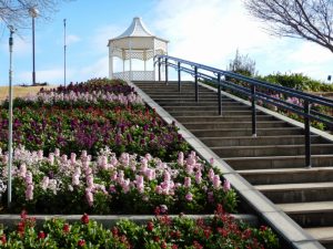 ⑬園路を進み、せせらぎ橋を渡り、移ろいの庭階段花壇を見てから淡路口ゲートに。お疲れさまでした。グルッと回って1時間はかからないと思います。
