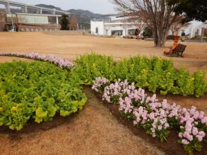 風が強い日は寒いのですが、ここ数日はポカポカと暖かく、上着を脱がれて散歩されているお客様もいらっしゃいました。ビオラやストックなどの花の香りを楽しみながら、お散歩いかがですか?