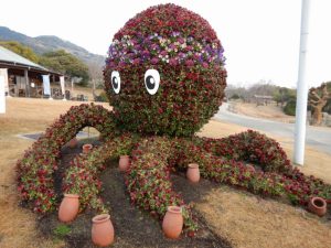 立体花壇「花火鳥」、「タコトピアリー」(場所:大地の虹、東浦口ゲート前)