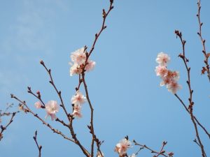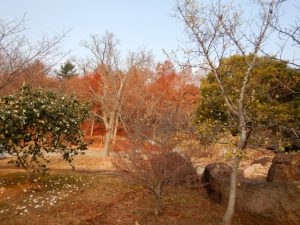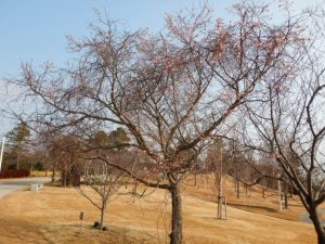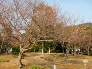 春と秋の2回咲く品種の桜が1月になってもまだ咲き続けています。園内に1本しか植えていない品種が多いので開花木の本数自体は少ないです。
