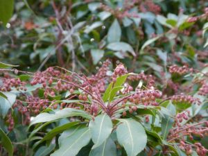 どちらも2月下旬くらいから開花が予想されますが、この時期からちっちゃなつぼみが目に入り始めます。開花するとミモザは黄色いポワポワの花が、アセビは壺形の花が房なりになってどちらもかわいいお花ですが、つぼみの今もかわいいのです。