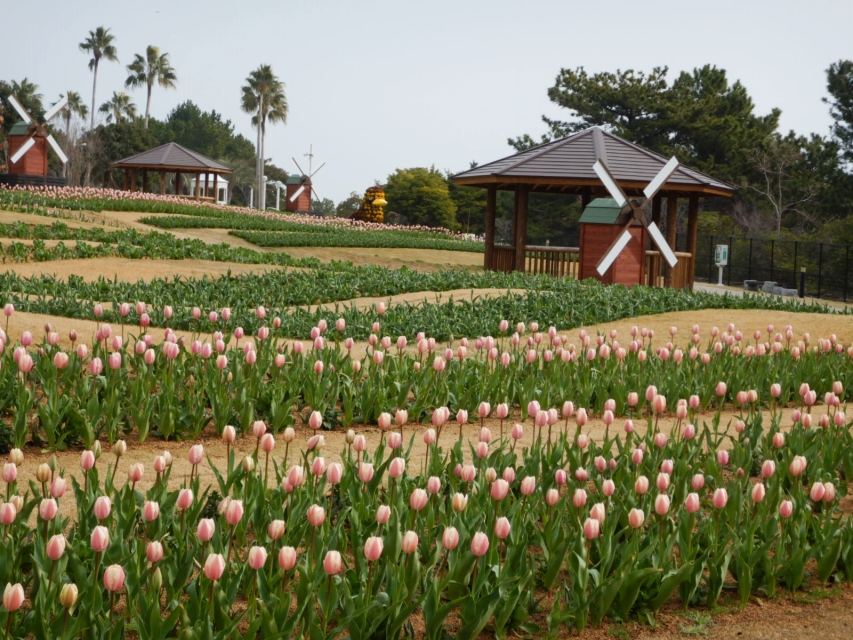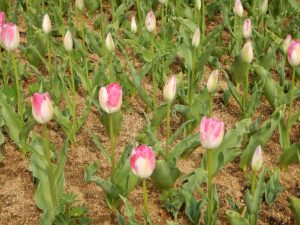 3月下旬までにはおおよその早咲きチューリップが咲き始め、そこを皮切りに開花時期の違う通常チューリップも咲き、4月半ばまでお楽しみいただける予定です。
