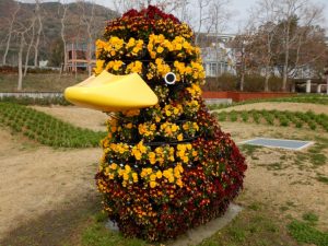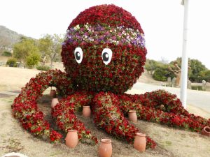 立体花壇「花火鳥」、「アヒル」、「タコトピアリー」(場所:大地の虹、東浦口ゲート前)