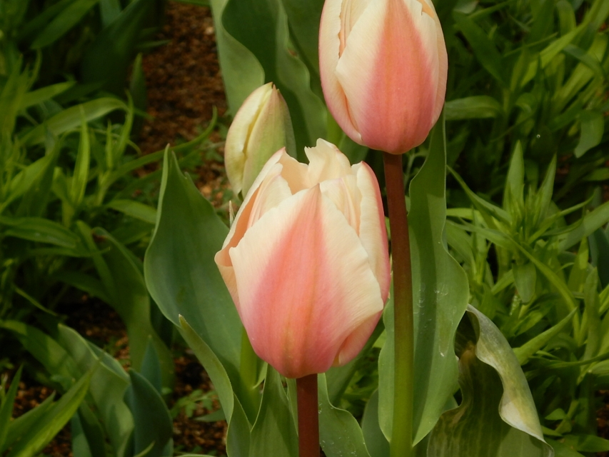 3月上旬からごく一部分の早咲きチューリップが咲き始めていましたが、思ったほど咲き進まず、開花品種数は増えませんでした。写真一・二枚目はポプラの丘の桃太郎という品種、三・四枚目はという大地の虹北花壇のタイスブーツという品種です。たった一品種の開花でも、写真だと結構咲いている感が出てますね。もう少し全体的に開花した品種数が増えましたら、このページの最初の方で「咲き始め」でご紹介します。