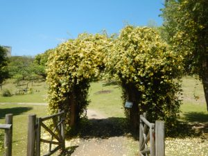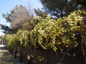 モッコウバラ(場所:大地の虹南花壇の海側園路のフェンス沿い)