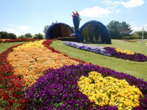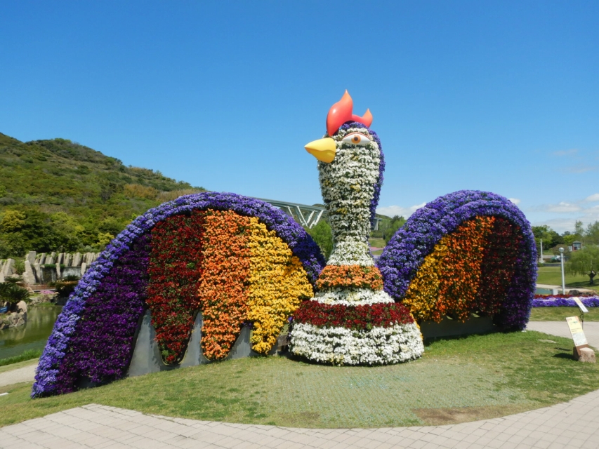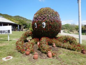 立体花壇「花火鳥」、「アヒル」、「タコトピアリー」(場所:大地の虹、東浦口ゲート前)
