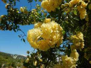 トゲのないバラ、モッコウバラがきれいに咲いています。