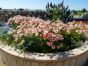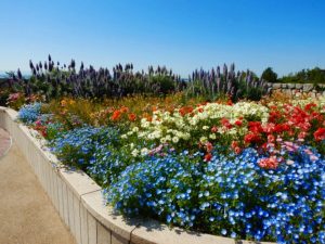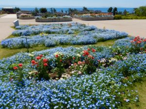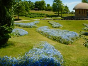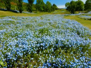 スペースに空きがあったので植えた海のテラス周辺の花壇のネモフィラが、今は一番きれいかも。