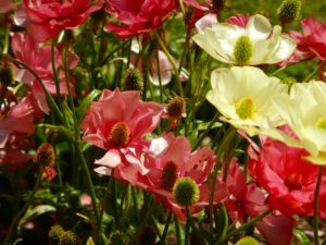 テラテラピカピカの花びらが特徴のラナンキュラス・ラックス。全体の3分の1くらいは散っちゃってますが、今日の時点ではボリュームある株もチラホラ。でもさすがに金曜夜の雨では散っちゃうかなぁと。ご来園の際、もしも残っていたらラッキーです。お楽しみいただきたいです。