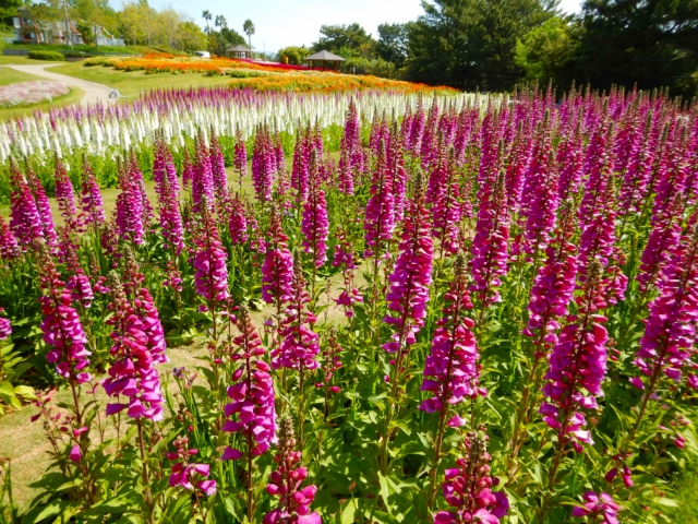 大地の虹北花壇が今とってもきれいです!特に私のおススメはジギタリス。この写真は立ったままサクッと撮影しているのですが、実際見ると写真以上なんですよ。