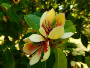 カラタネオガタマと言ったらバナナ(の匂い)。午後になると香りが強くなります。地味過ぎて目で探そうと思っても探せないと思うので、鼻を澄ませて頑張って探してみてください。