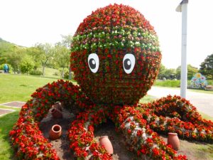 立体花壇「タコトピアリー」&「花火鳥」のベゴニア(場所:東浦口ゲート前/大地の虹)