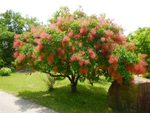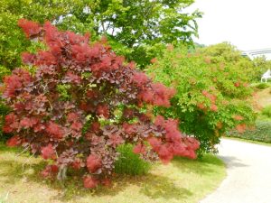 スモークツリー(場所:移ろいの庭海側近くの園路沿い(2本)、せせらぎ広場園路沿い(1本))