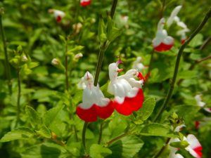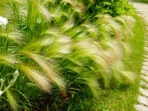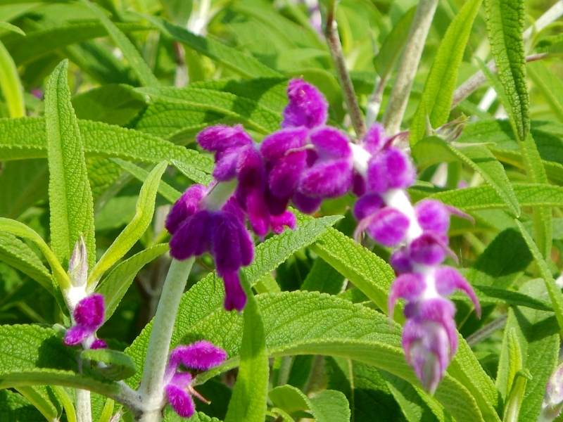 秋になるとモフモフの紫色のお花、サルビア・レウカンサが咲きまくる場所です。そのレウカンサはちょっとだけ咲き始めています(写真一枚目)。この場所にはそれ以外にも、お花・草たちをたくさん盛り込んであり、今日は3種類ご紹介します。写真二枚目は私の愛するホルデューム・ジュバタム。サラッサラのフワッフワが光を浴びてピンクに見えたりする草です。風が吹くとキラキラきれいですよ~。三枚目は紅白がかわいいチェリーセージ。四枚目は家で食べ損ねて芽が出ちゃったニンニクを植えたものです。もうすぐ咲きますよ。