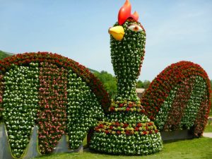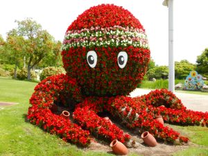 立体花壇「タコトピアリー」&「花火鳥」のベゴニア(場所:東浦口ゲート前/大地の虹)
