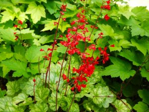 花の谷と松の谷の間の園路沿いは、和風に見える花壇を目指して植栽をしています。