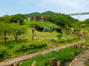 写真一枚目:せせらぎ広場、二枚目:空のテラス入り口