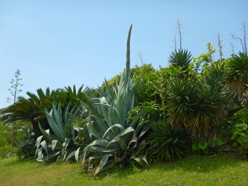 アオノリュウゼツランの花茎が伸び始めました!(場所:花の谷(空のテラス下あたり))