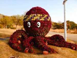 冬になると木々の葉っぱが無くなって、園内はとっても見通しがよくなります。すると目立ってくるのが立体花壇。お花もきれいに咲いていますので、近づいていきたくなりますよ。ビオラの香りも味わってくださいね。